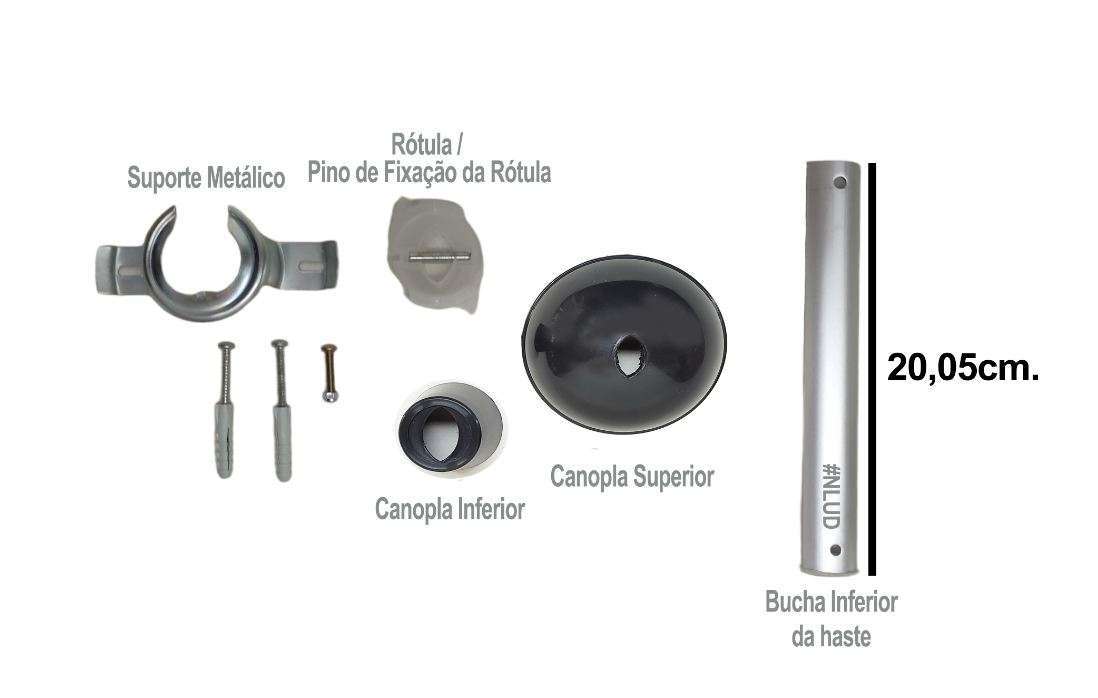 Kit de Instalação fácil Ventilador de Teto – Haste c 20cm. e acessórios de acabamento Preto – Alta Performance e Segurança